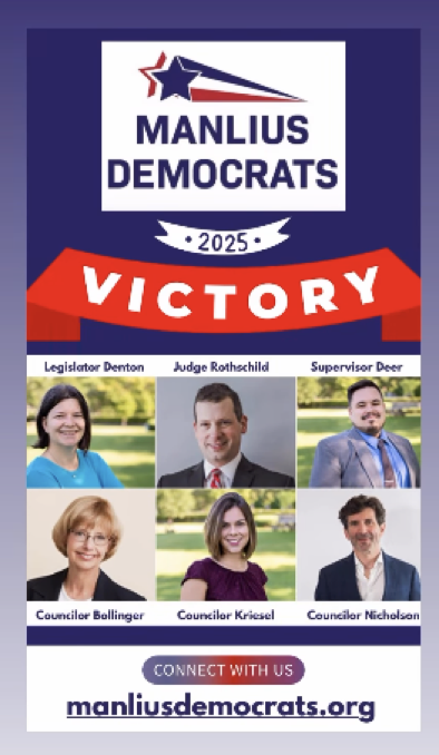 Congratulations to Elaine Denton who ran a strong campaign to win a seat on the Onondaga County Legislature. The Democrats will have a majority on the legislature for the first time in many years.